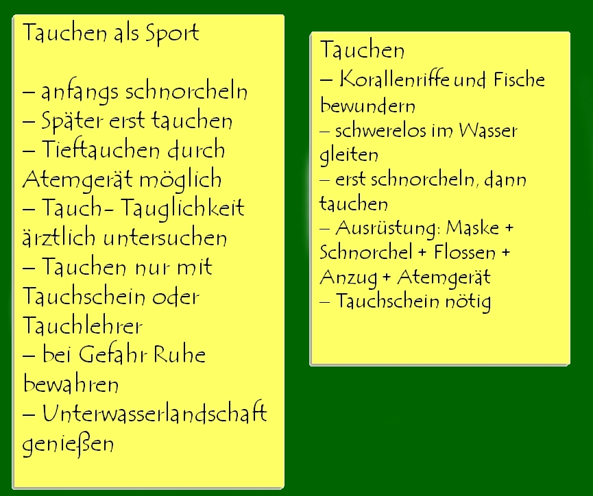 den Text für die Schülerzeitung zum Thema Tauchen,